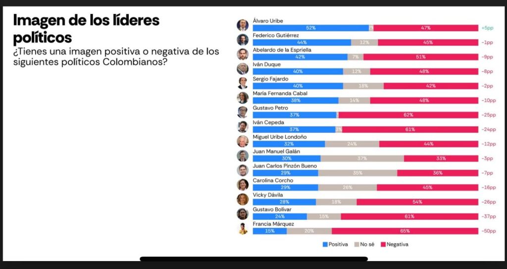 El estudio la ubicó como la sexta imagen positiva más alta de todo el ranking nacional, un espacio históricamente reservado para expresidentes, alcaldes con alto reconocimiento o candidatos presidenciales ya consolidados.
