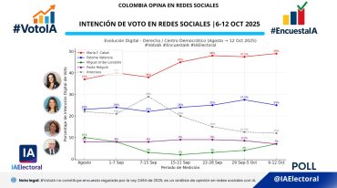 Entre el 6 y el 12 de octubre, la senadora del Centro Democrático creció dos puntos en intención de voto […]